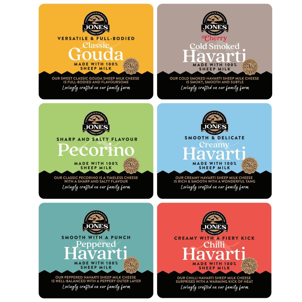 Our 5-pack of cheese includes a selection of either: Creamy Havarti, Classic Gouda, Peppered Havarti, Chilli Havarti, Cold Smoked Havarti & Pecorino (5 x 60g)